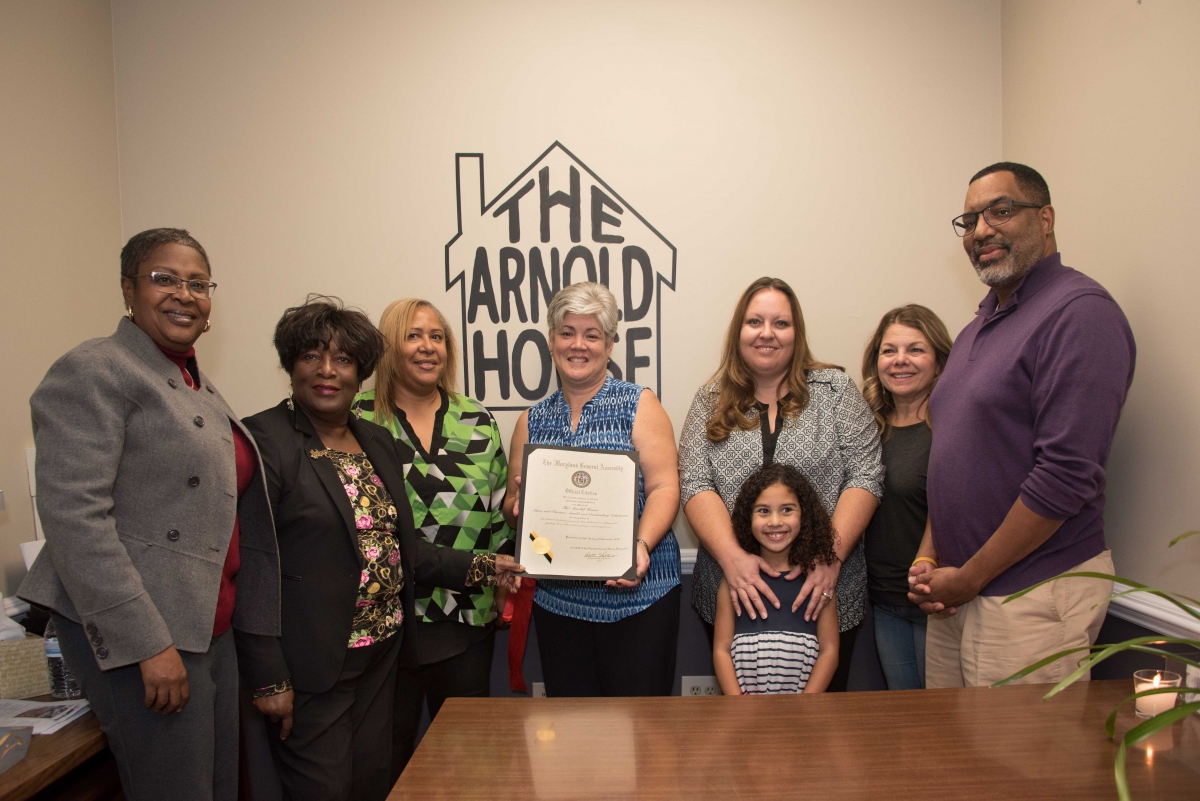 On Saturday Nov. 5, 2016, The Arnold House held its official grand opening celebration at its new office located at 3444 Rockefeller Ct. Waldorf MD.  The event kicked off with a prayer and blessing by Reverend George E. Hackey, Jr. senior pastor Metropolitan United Methodist Church in Indian Head, MD.  The highlight of the evening came with a citation from the Maryland General Assembly presented by Delegate Edith Patterson and County Commissioner Deborah Davis to the Arnold House for the dedication and work being done to provide for those needing assistance and compassion.